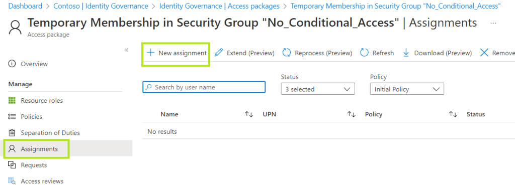 Open the AP and click the „Assignments“ pane, followed by „New assigment“.