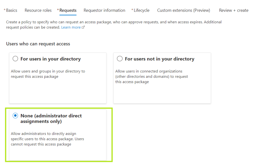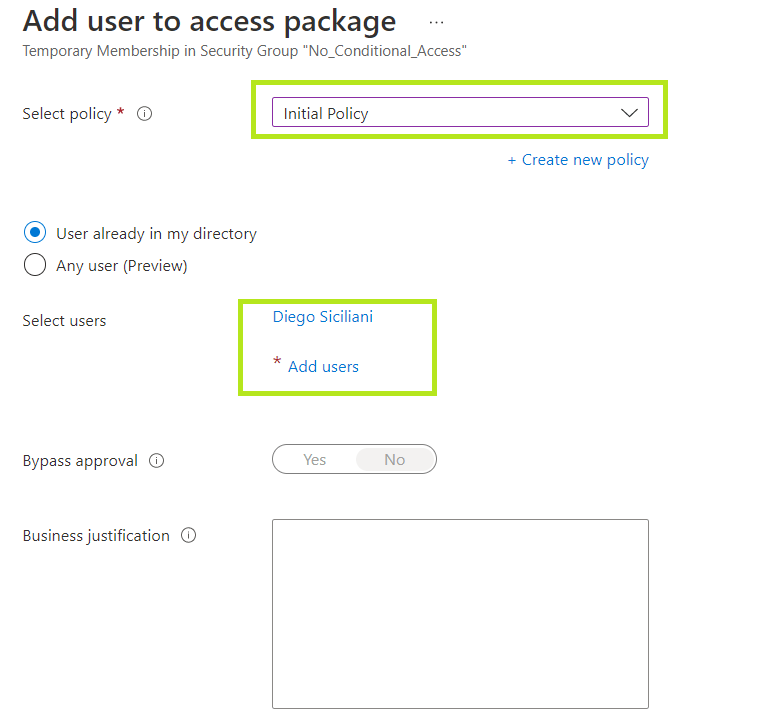 Select, that only an admin can assign users to the AP (this really depends on your use case. In my case, I want users to temporarily be excepted from certain conditional access policies. There is no need for users to request that by themselves):