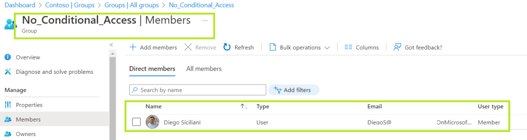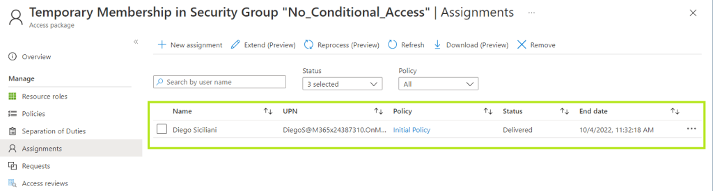 An if we check the security group, we can see, that Diego is now a member (for 4 days 😉).