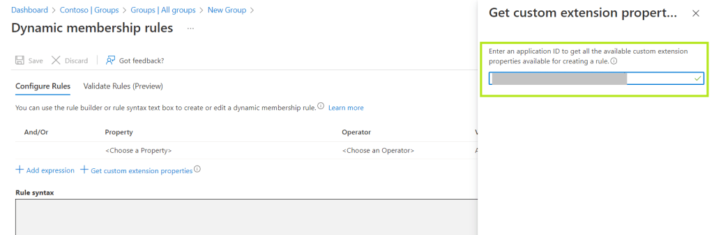 When configuring the dynamic group membership, choose „Get custom extension attribute“